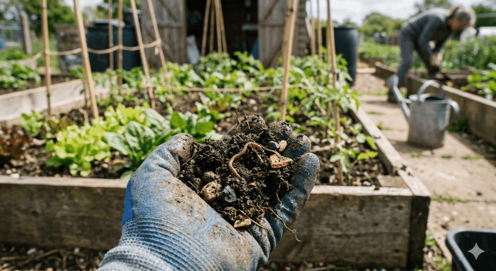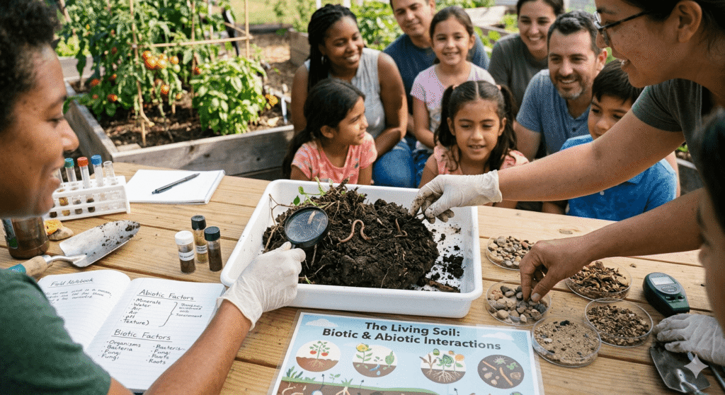 Test your pH and mineral levels that’s the abiotic audit. Then look for biological signs: earthworm presence, fungal threads in your compost, the smell of healthy microbial activity, plant vigor. These two assessments together give you a much clearer picture than either one alone.